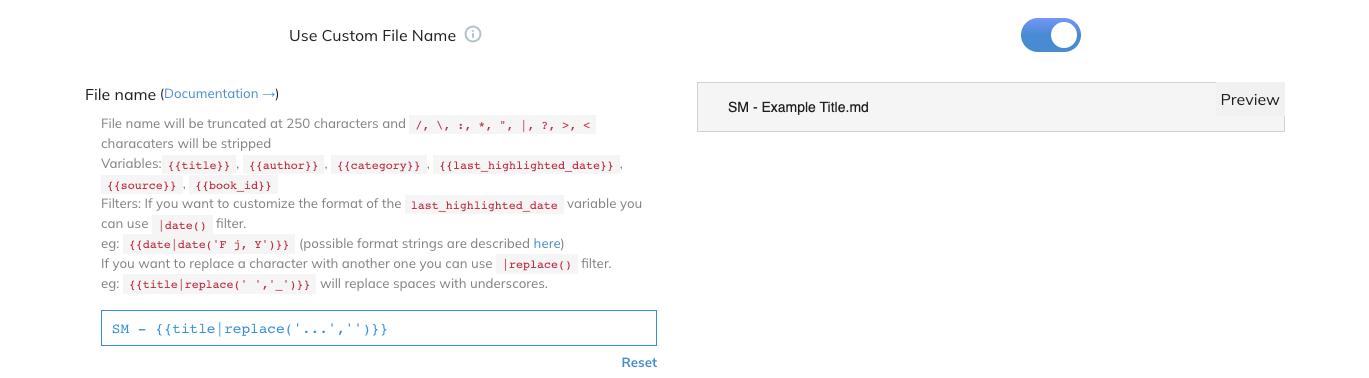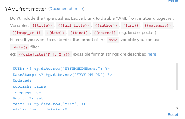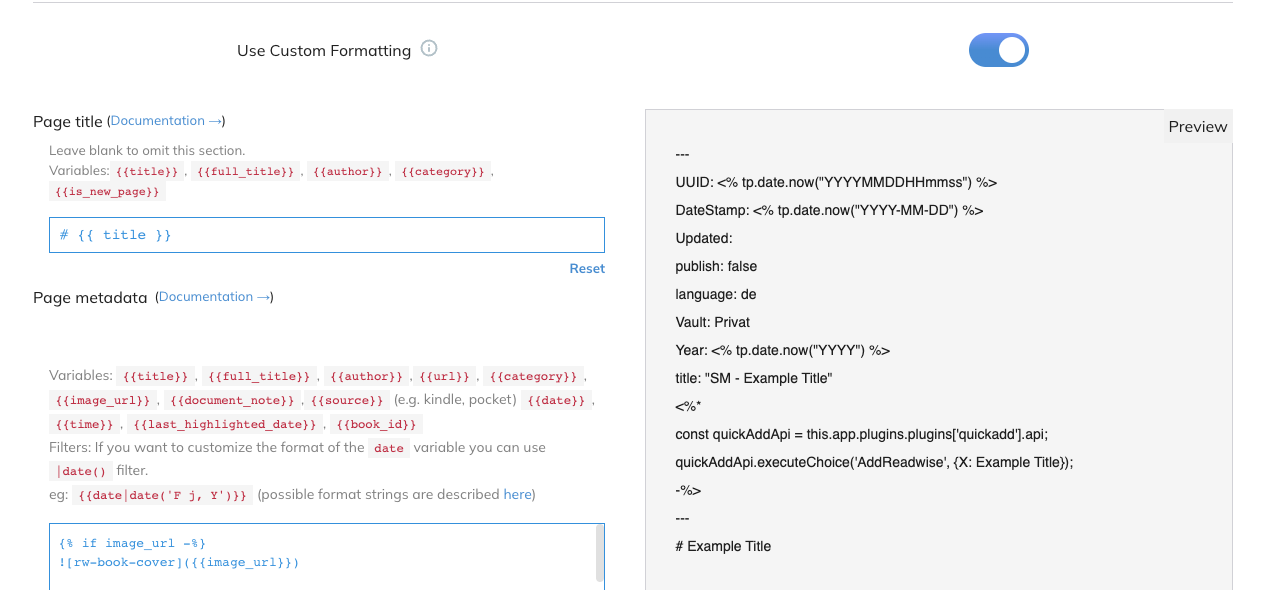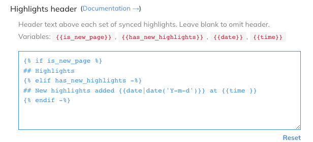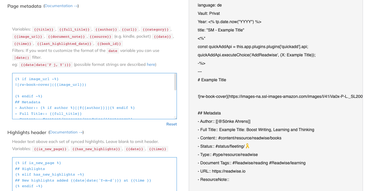 Readwise benutzt für das Anpassen der Exporte die Jinja2 Template Language.