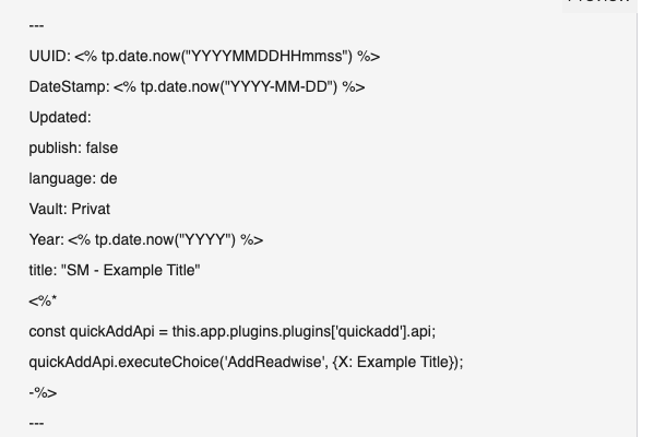 quickAddApi.executeChoice('AddReadwise', {X: {{title}}});