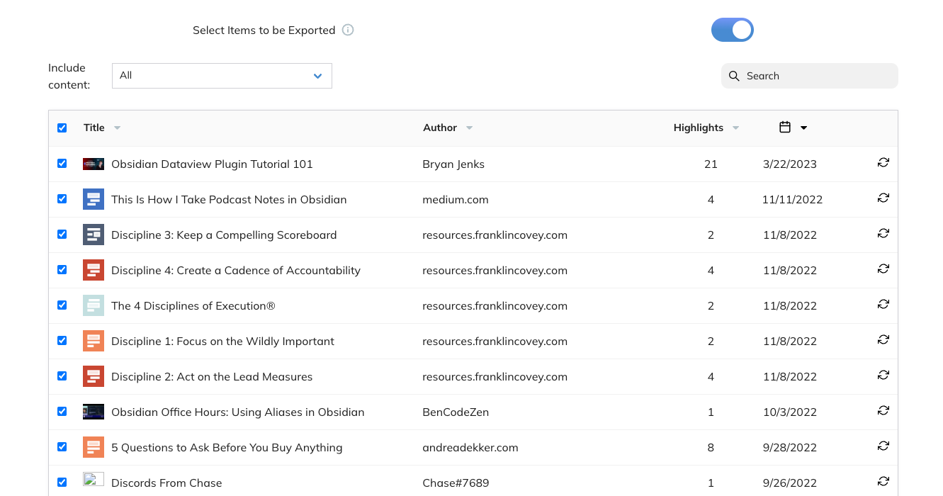 Ich wollte aber einen einheitlichen Aufbau der Highlights haben und für einige meiner Quellen (z.B. Reclipped) gibt es keinen ordentlichen Export / Import für Obsidian, aber für Readwise.