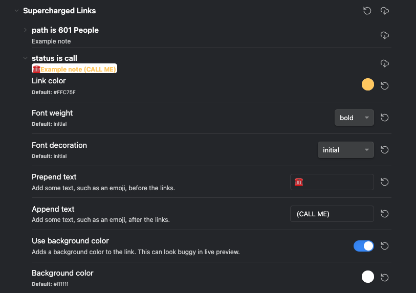 After defining the rules you can define the styling. You need to switch over into the Style Settings configuration and you can then change the styling under Supercharged Links.
