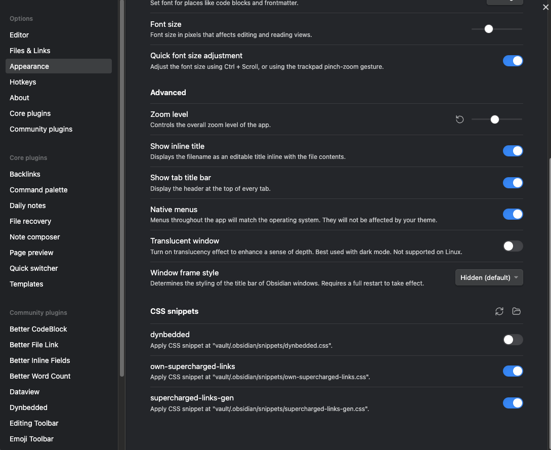 And there are still some things which require you to create custom CSS snippets and don’t work with the Style Settings.